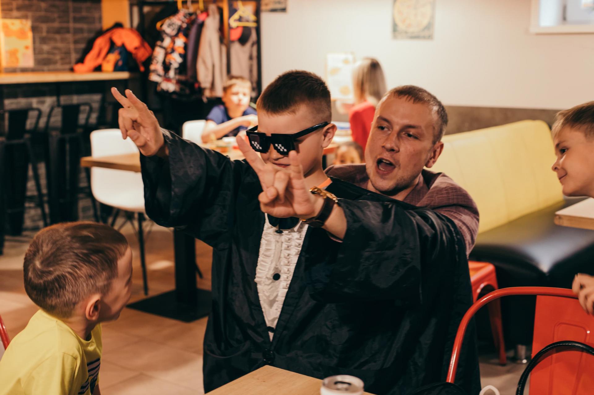 Со временем наработал стиль, персональный образ, собрал коллекцию любимых приемов и обновил оборудование. Гостям нравится моя коробка «угадай, что внутри». Это такой специальный ящик с одной прозрачной стенкой, подсветкой и отверстиями сбоку. Я кладу в коробку предмет или даже живого кролика, а гость должен просунуть руки внутрь коробки и наощупь понять, что там. При этом остальные зрители через прозрачную стенку прекрасно видят содержимое коробки. Я, конечно, все это смешно комментирую, и уверяю, что взрослые при этом веселятся даже больше детей!