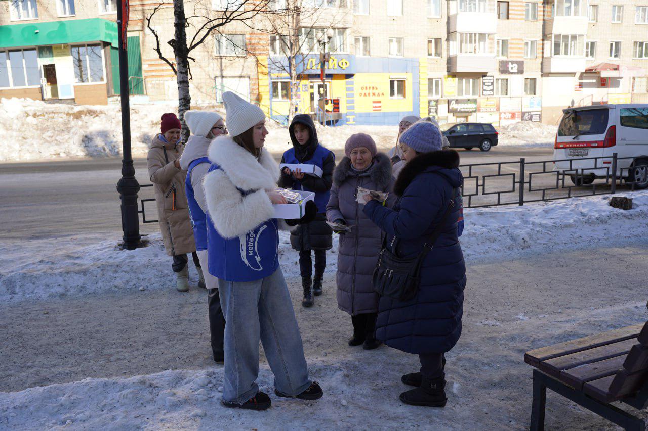 На улицах поселков волонтеры раздавали хлеб как символическое напоминание о сотнях дней голода, который унес тысячи жизней взрослых и детей блокадного Ленинграда.