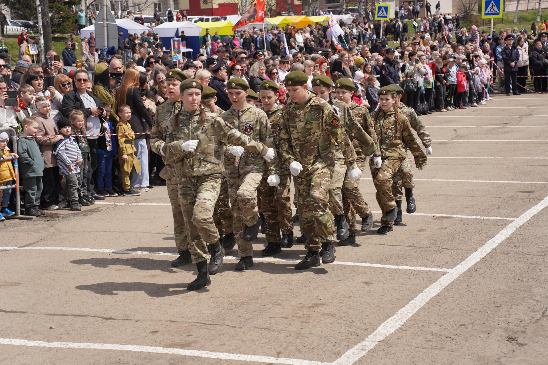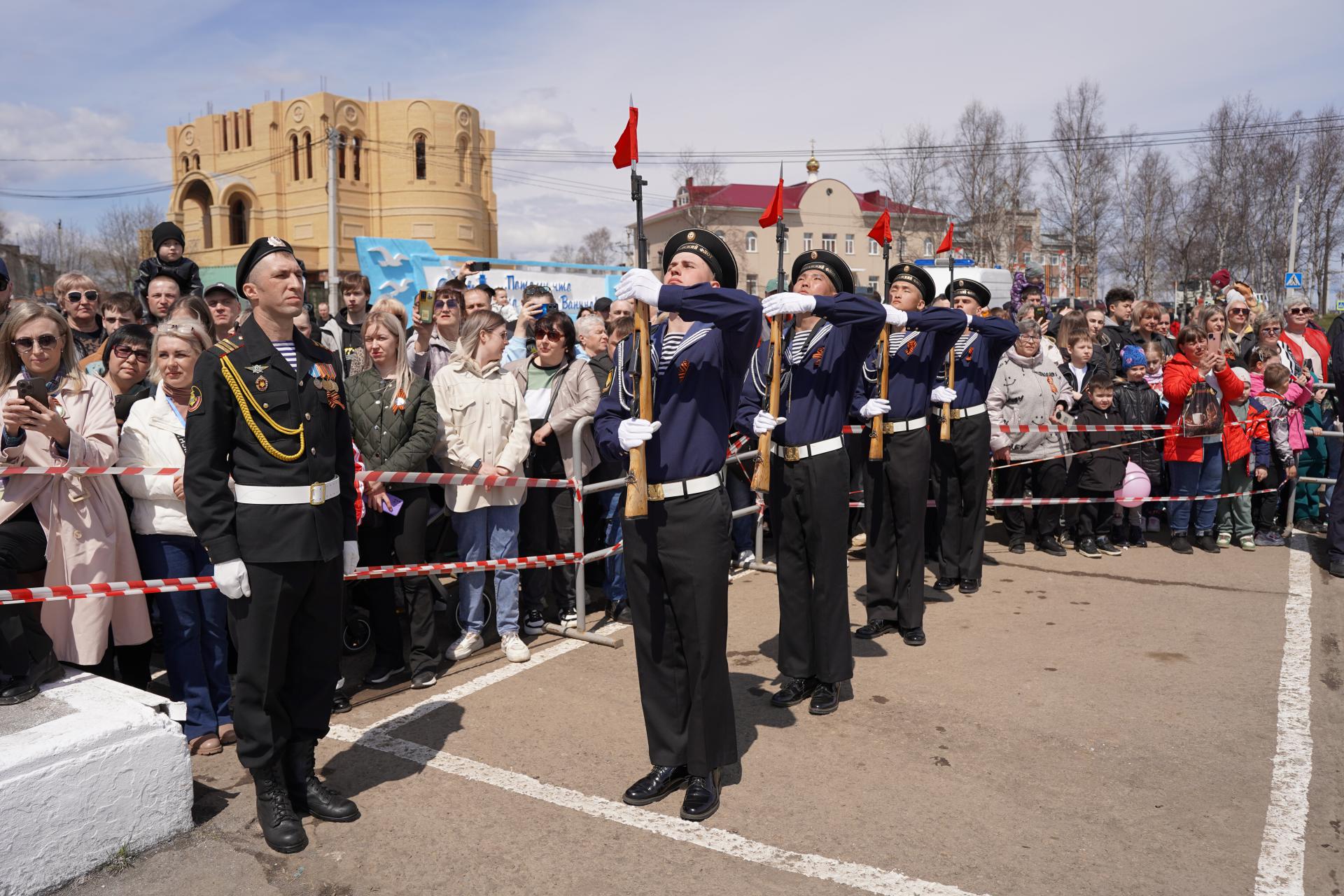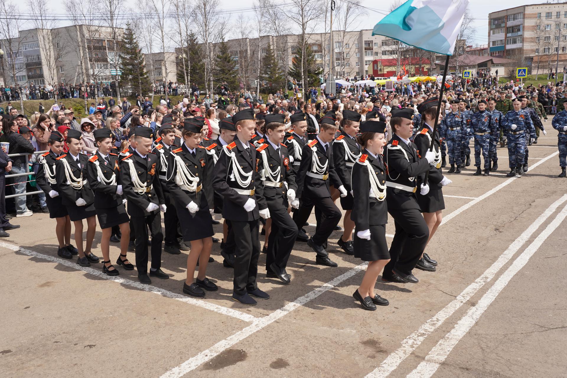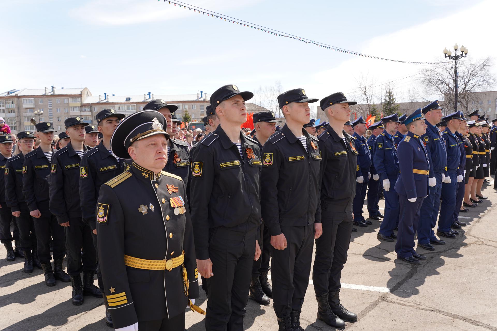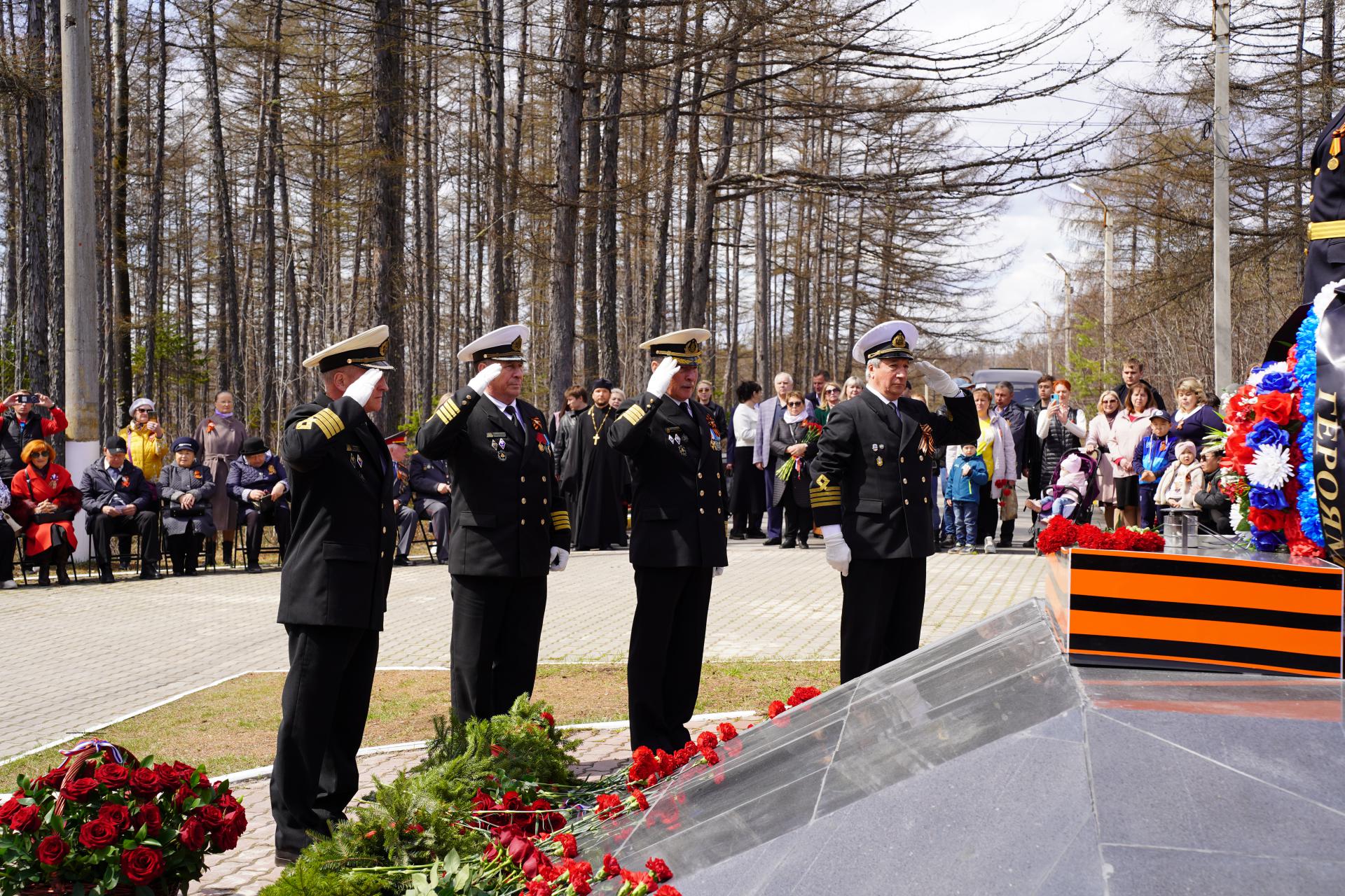 - Ко Дню Победы в Великой Отечественной войне парад построен, — отрапортовал подполковник Монгохтинского военного гарнизона Александр Филиппов. Принял парад начальник гарнизона, капитан 2-го ранга Игорь Савоцкий.