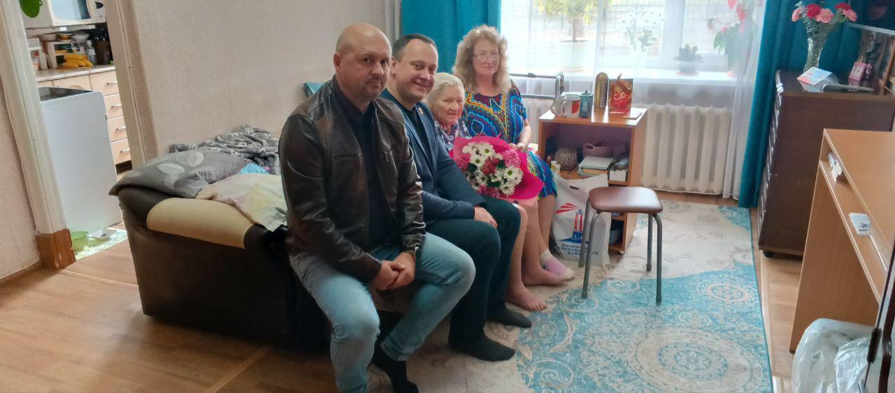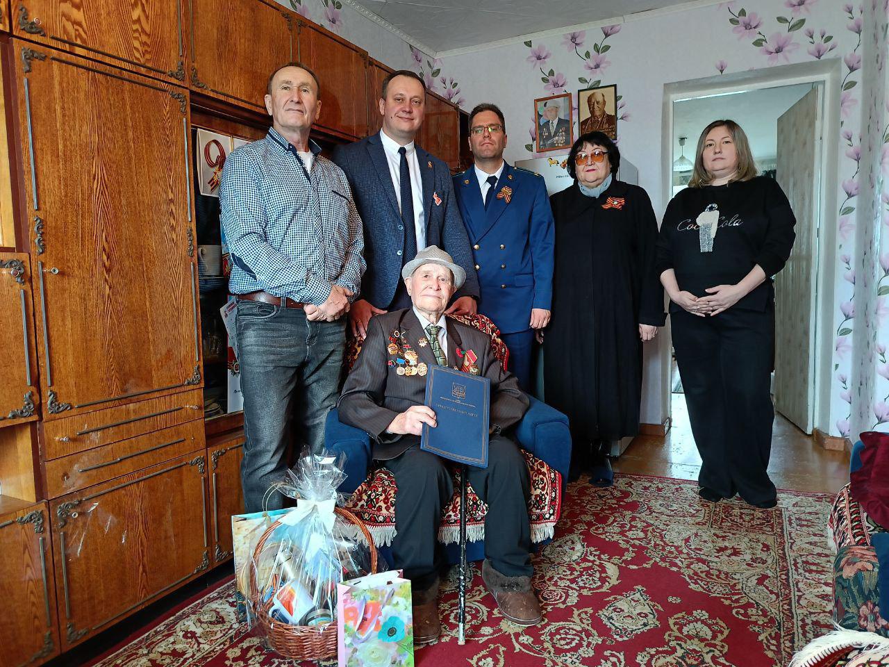 С радостью и глубоким уважением поздравил участника Великой Отечественной войны Ивана Фёдоровича Пазухина, тружениц тыла Агнию Фёдоровну Гуляеву, Екатерину Ивановну Черенкову и бывшую узницу фашистского концлагеря Нелли Петровну Кравченко.