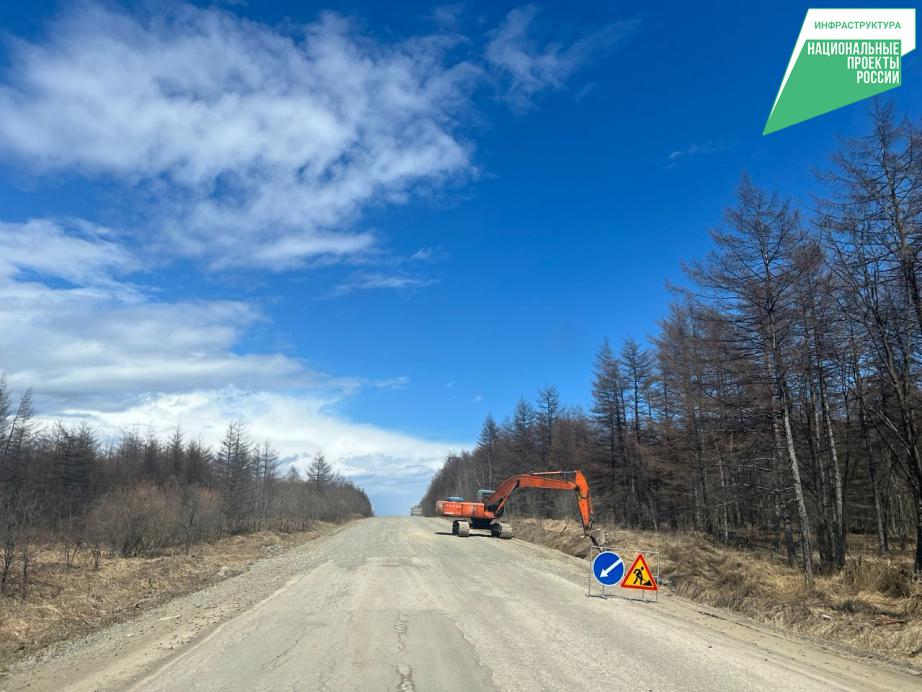 На подъезде к п. Монгохто в Ванинском районе начался ремонт дорожного полотна. Работы проводятся по президентскому нацпроекту «Инфраструктура для жизни». Специалисты приводят в порядок два участка региональной автодороги.