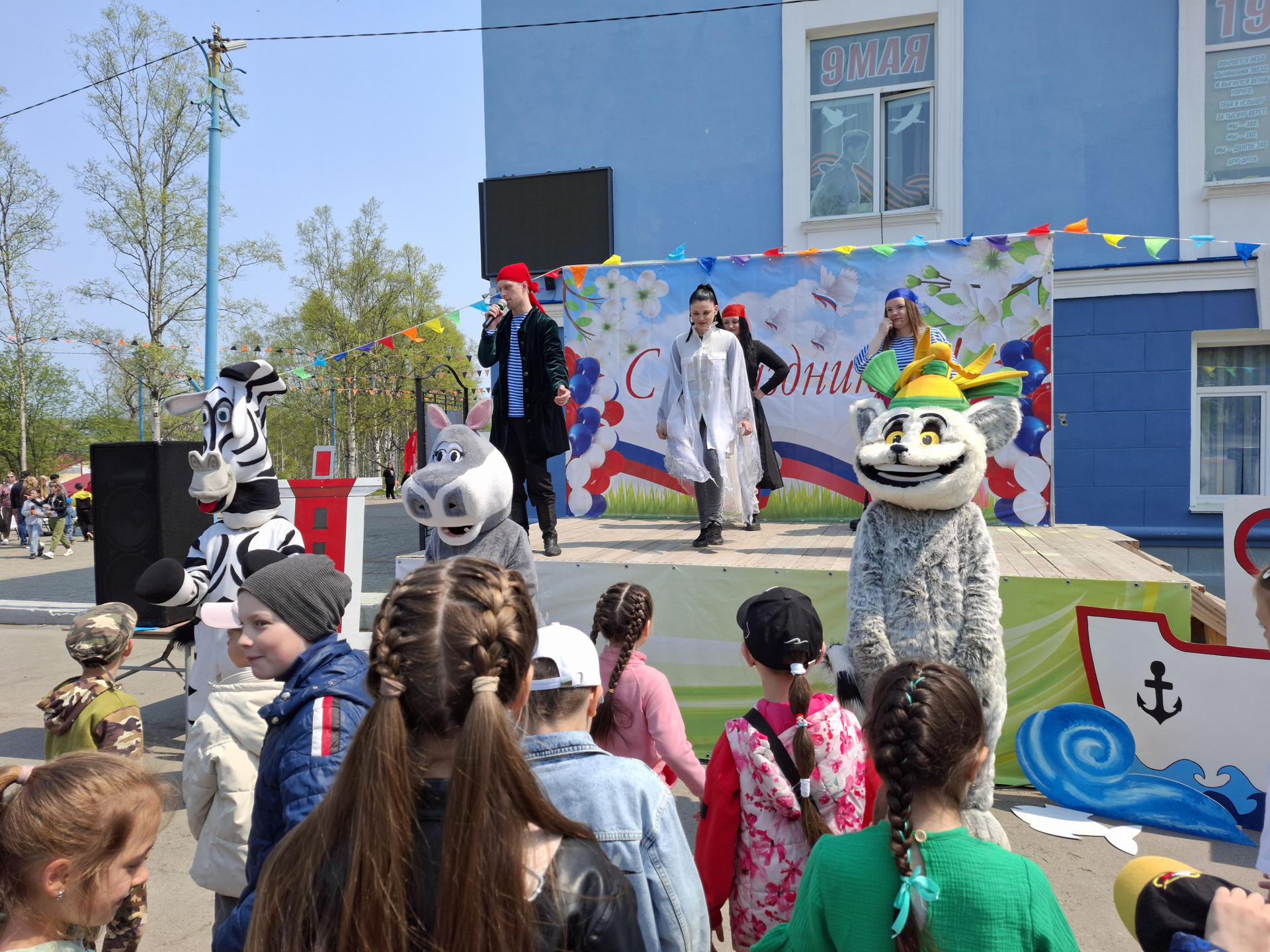 В этом году жители п. Ванино встретили праздник на площади Маяковского. С самого утра здесь царила атмосфера веселья и настоящего лета: звонкий детский смех, батуты, карусели, попкорн и сладкая вата. Для маленьких гостей состоялась театрализованная развлекательная программа, развернулась ярмарка с сувенирами, угощениями и аквагримом, а вокруг гуляли любимые персонажи в виде ростовых кукол. На площади работали игровые зоны, где каждый ребёнок мог найти себе занятие по душе: от подвижных игр до мастер-классов, а также состоялся бесплатный кинопоказ детского мультфильма. Началом дня стало торжественное открытие фестиваля детства и юности «Движение Первых».