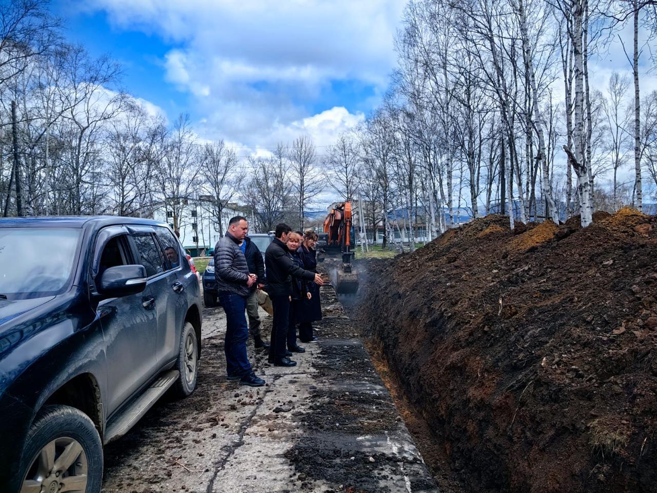 Также прошла рабочая встреча с Анжеликой Валерьевной, на которой обсудили важные вопросы, касающиеся замены тепловых сетей в п. Высокогорном. 25 мая состоялся осмотр выполняемых работ.