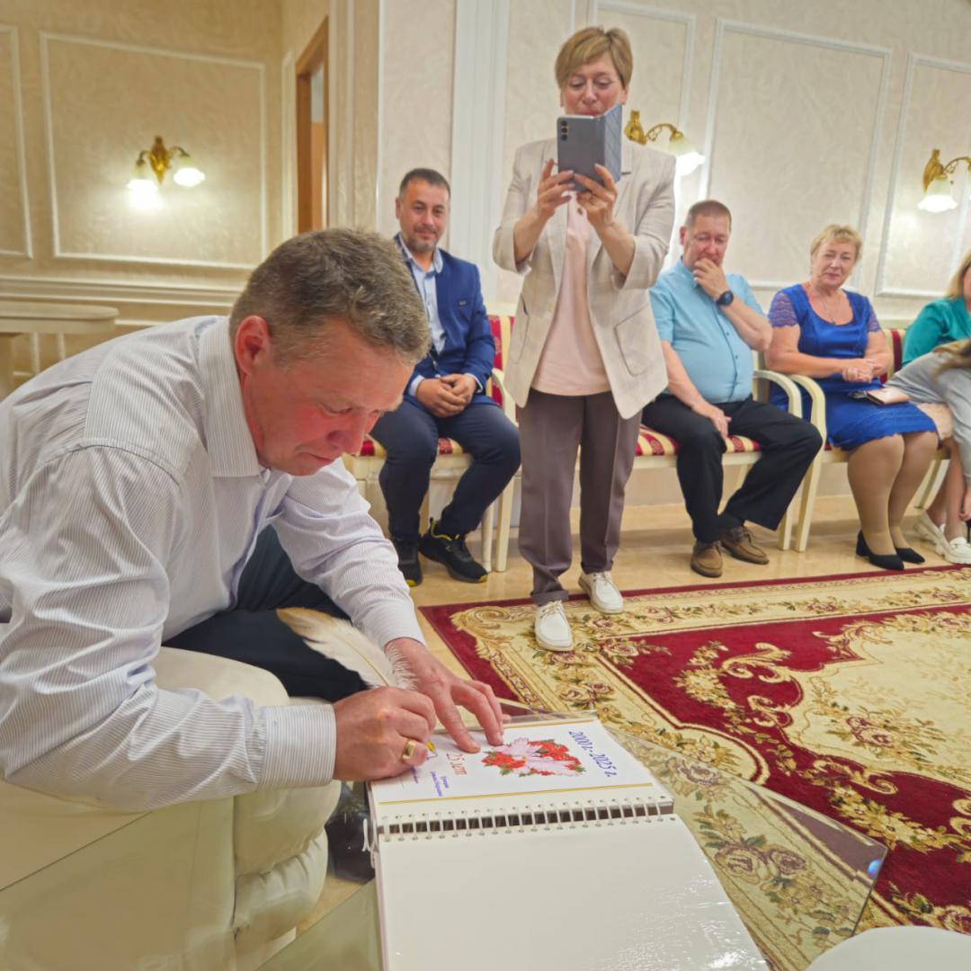 В тёплой атмосфере, окутанной таинственными трелями скрипки Руслана Беленького, среди родственников и друзей, одаривавших юбиляров искренними поздравлениями, добрыми взглядами и нежными объятиями, ведущая Виолетта Ниязова, главный специалист отдела ЗАГС, рассказала душевную историю жизни семейной пары.