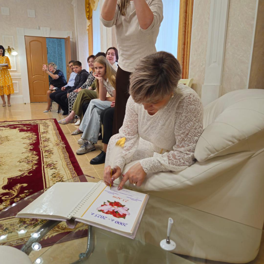 В завершение мероприятия юбиляры поставили свои подписи в актовой записи о заключении брака, но прежде они в очередной раз, как и 25 лет назад, признались друг другу в любви, сказали заветное "Да", поклялись хранить верность и поддерживать в трудные минуты жизни. Звучание марша Мендельсона и крики "Горько!" сменяются любимой музыкальной композицией, и молодожёны сливаются в медленном танце…