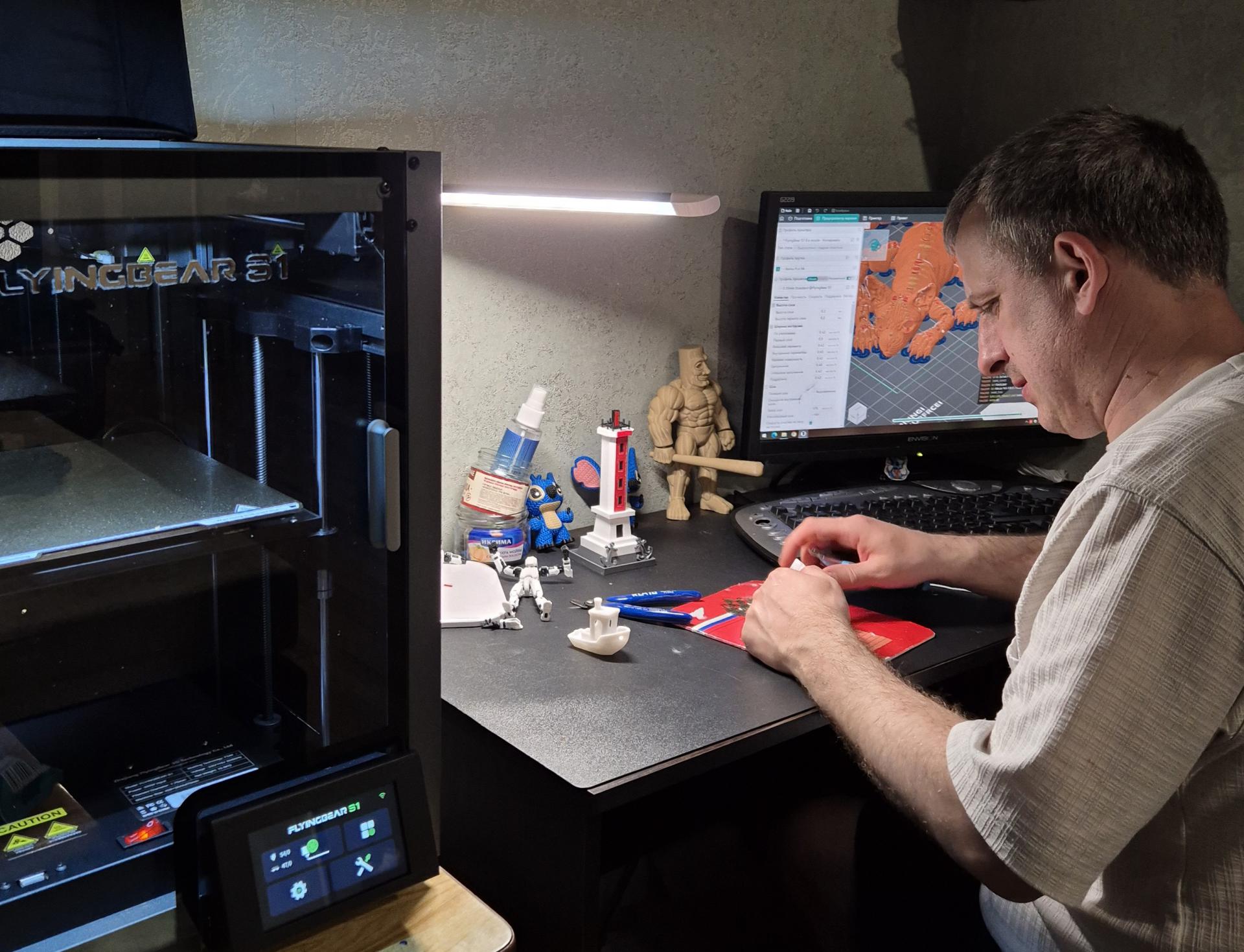 Увлечение началось с 3D-игрушек: увидел готовые модели в интернете, заинтересовался, стал разбираться. Так дело дошло до покупки 3D-принтера. Новой деятельности он уделял всё свободное время: сидел часами, даже «ночевал у принтера», а первой получившейся игрушке радовался, как ребёнок. «Вот бы мне таких солдатиков в детстве, я их просто обожал» — посмеивался он, показывая фигурку подвижного человечка на шарнирах.