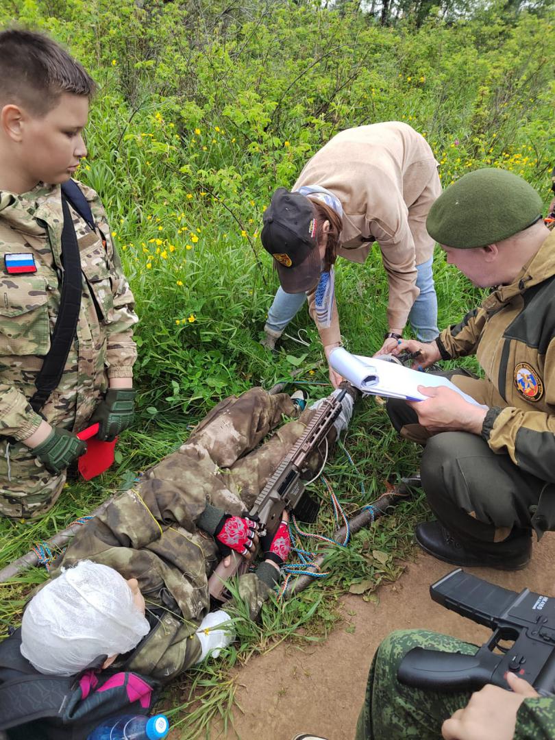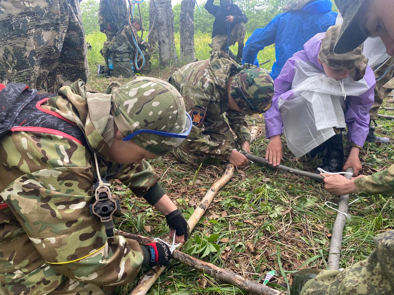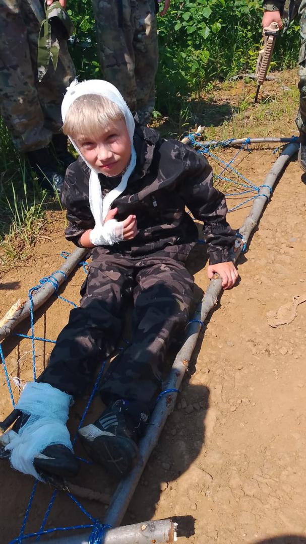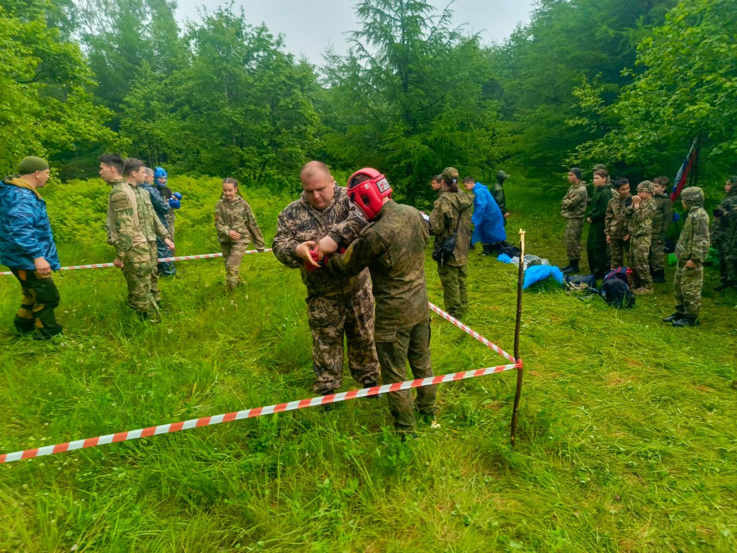 После этого отряды двинулись в сторону бухты Обманная на пункт проверки знаний тактической медицины. Ребята должны были оказать первую помощь: перевязать, наложить шину, сделать носилки из подручных материалов и перенести на них раненого бойца. Усилия команд оценили сопровождающие медики Светлана