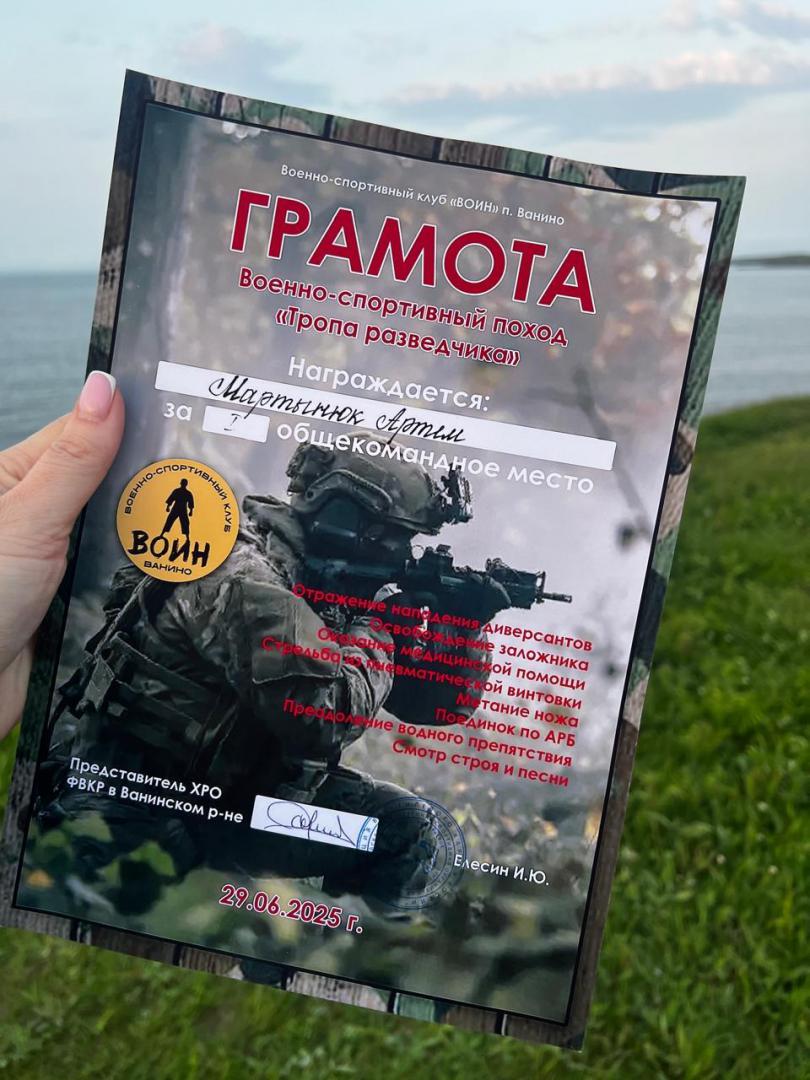 - Все воспитанники клуба "Воин" - кадеты детско-юношеского военно-патриотического движения "Гвардейская смена". В плане развития мы хотим им дать как можно больше, подготовить ребят к службе в Вооружённых силах Российской Федерации, поэтому стараемся проводить такие мероприятия чаще, - поделился один из организаторов похода, тренер по армейскому рукопашному бою, представитель Федерации всестилевого каратэ России в Ванинском районе Игорь Елесин.