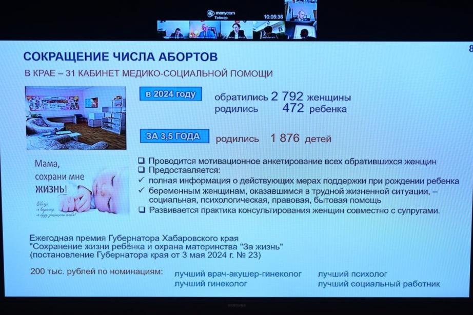В своем докладе Артем Мельников подробно остановился на мерах по улучшению жилищных условий, охране репродуктивного здоровья населения, профилактике абортов, развитию системы ЭКО, укреплению института семьи.