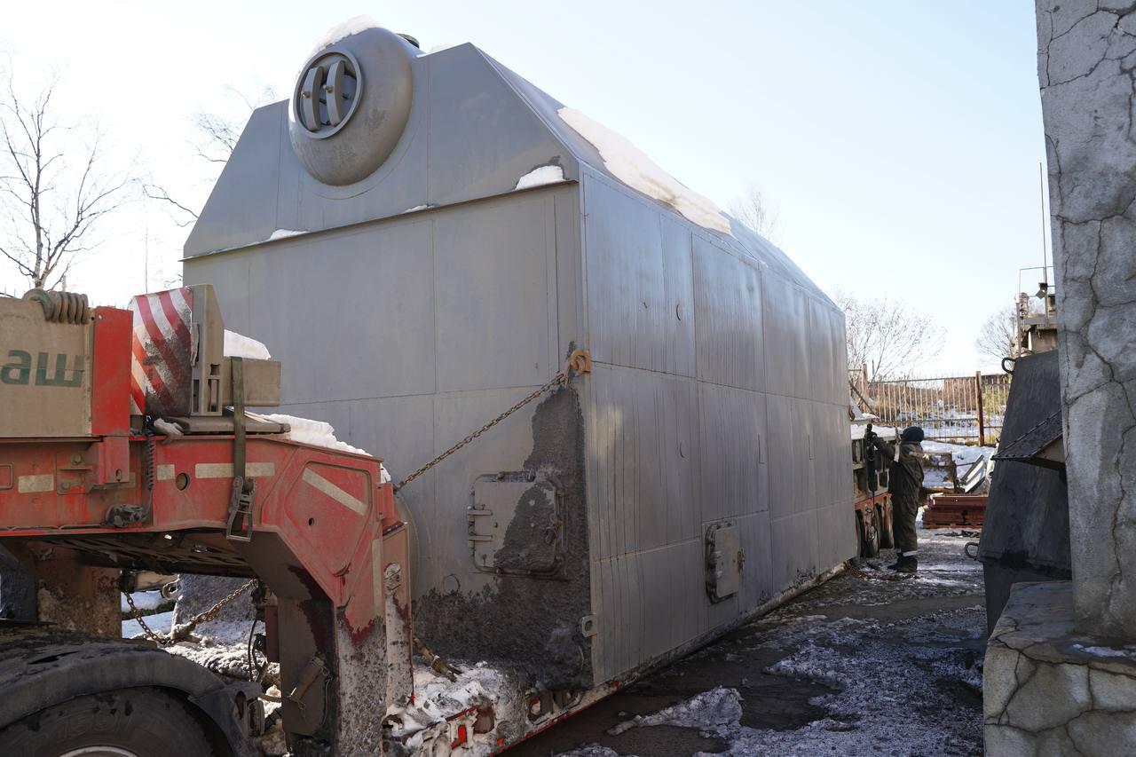 Тем временем в п. Октябрьском шли контрольные приготовления к монтажу нового котла на котельной. Это первая замена котлоагрегата с момента строительства данного коммунального объекта. 30 октября котёл был успешно установлен через демонтированную кровлю, после чего начались работы по её восстановлению.