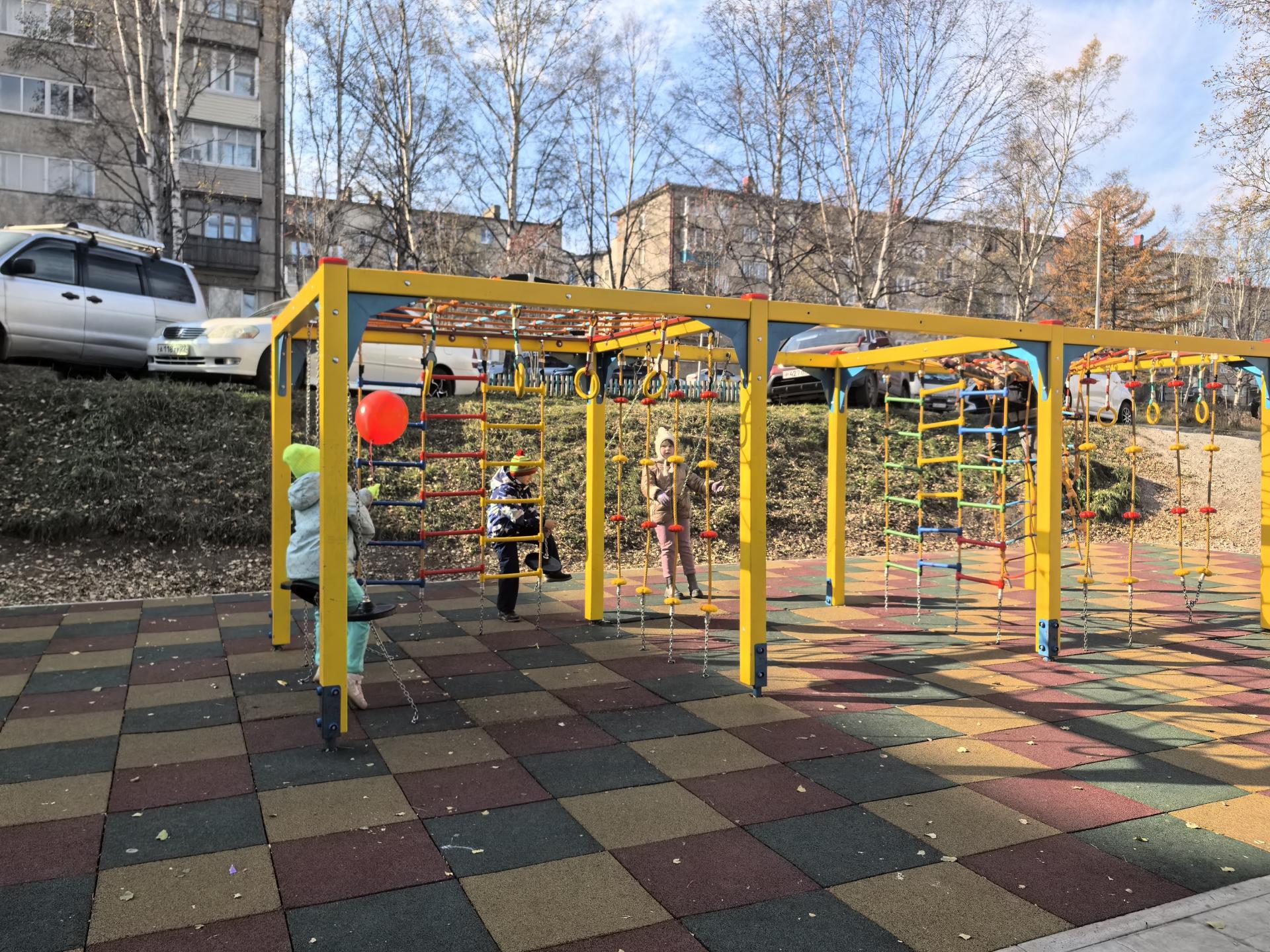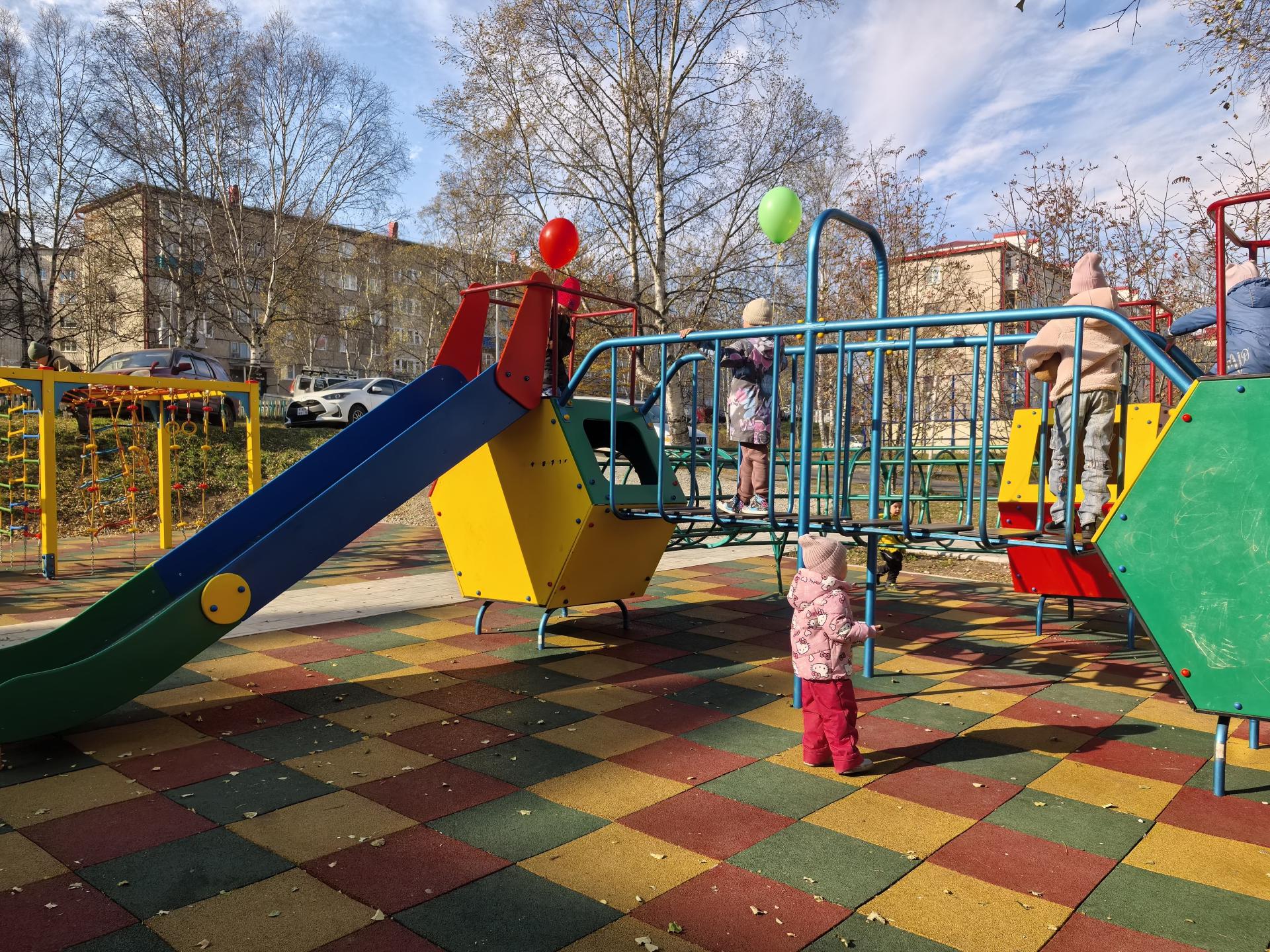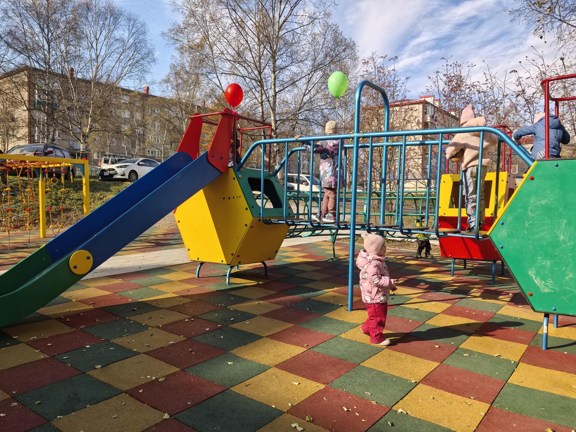 Новая игровая площадка в конце прошлой недели открылась на ул. Молодёжной, 11 п. Ванино по программе "Благоустройство дворов и многоквартирных домов" при активном участии управляющей компании "Кристалл" и финансовой поддержке региона.