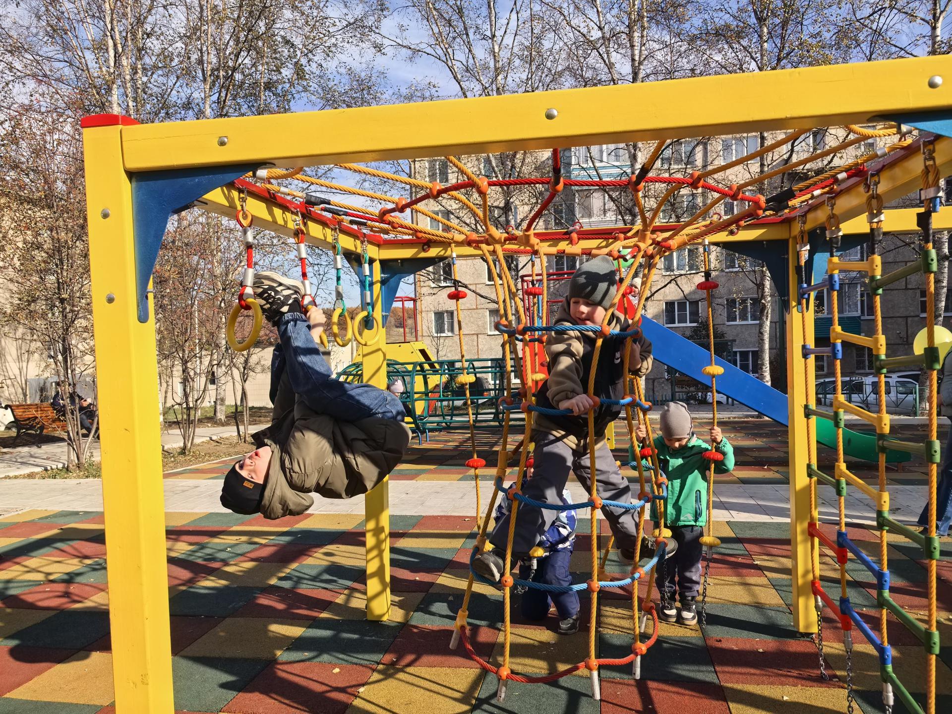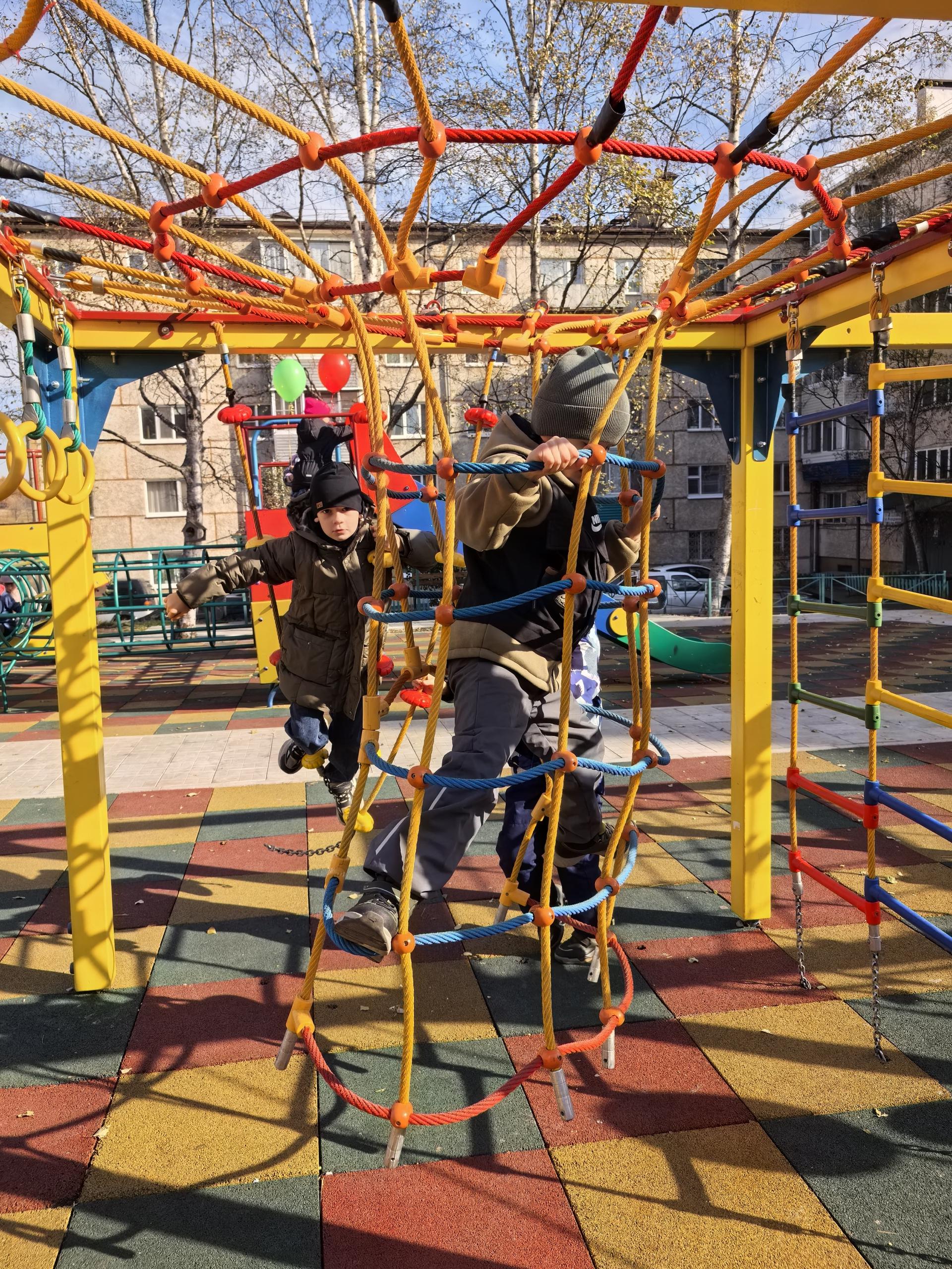 На новой площадке установили горку, удобные качели, канатные сетки. Особый восторг у детворы вызвал спортивный комплекс с рукоходами и турниками - он точно станет местом активного досуга после школы. Всё продумано до мелочей: мягкое резиновое покрытие, которое смягчит падение, новые скамейки для родителей, чтобы можно было комфортно наблюдать за играми, урны для поддержания чистоты. Стоимость выполненных работ составило 7,3 млн руб., субсидия из краевого бюджета составила 7,100 млн руб.