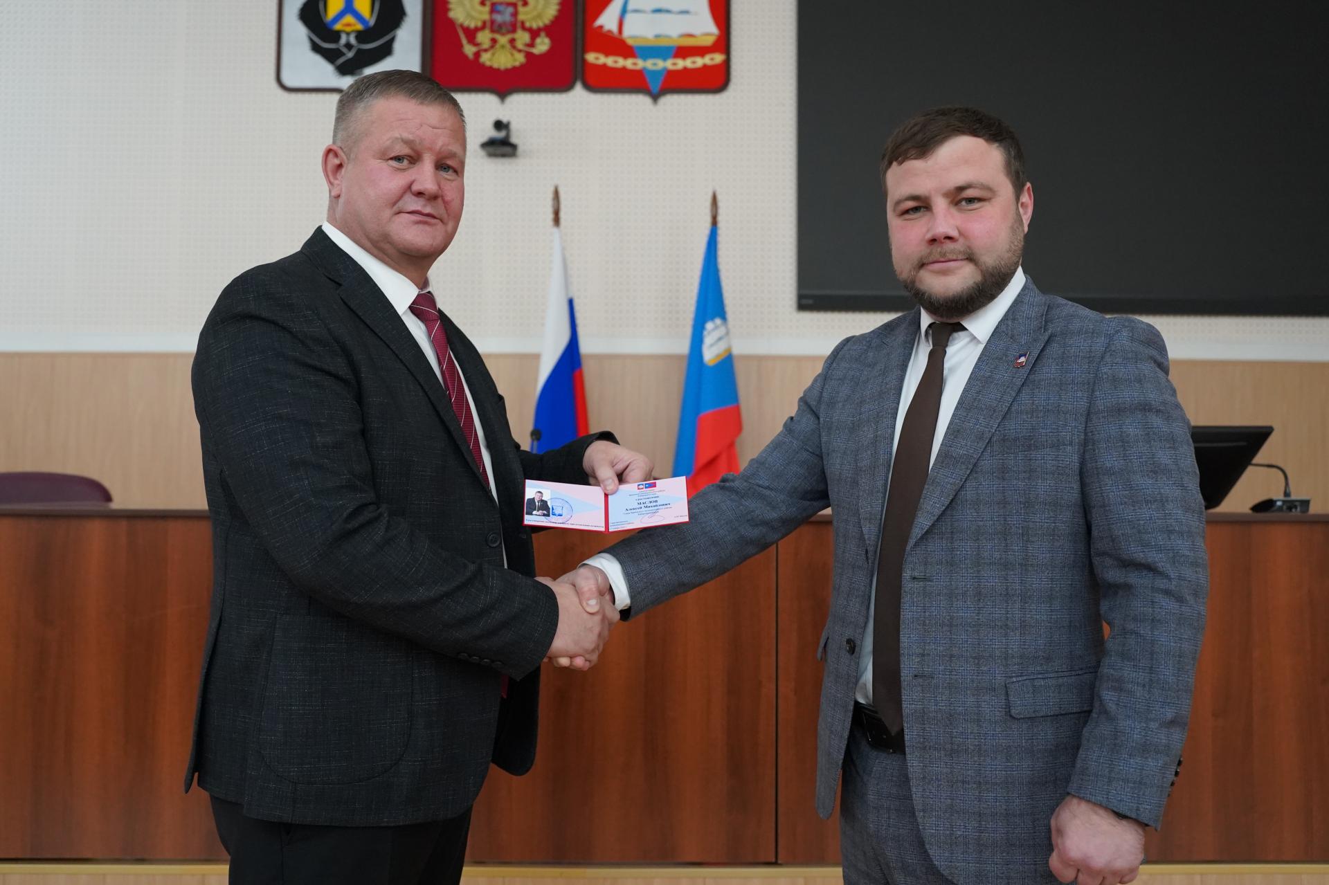 В торжественной обстановке он принёс присягу. После этого председатель районного Собрания депутатов Вячеслав Соколов вручил Алексею Маслову удостоверение главы района.
